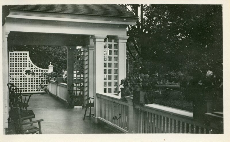 A photographic print of the farmhouse front porch at Northwood Farm.